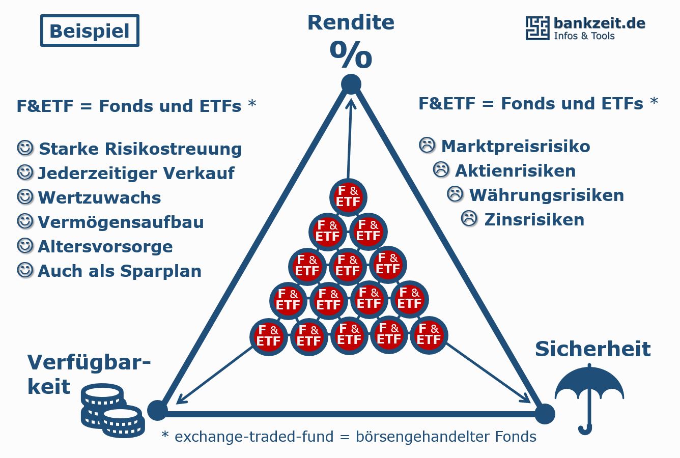 Bei Fonds oder ETFs ist die Risikostreuung schon mit "eingebaut", trotzdem kann man mit einem Anlagemix auch hier noch weitere Optimierungen vornehmen, um die ganz persönlichen Wünsche abzubilden.