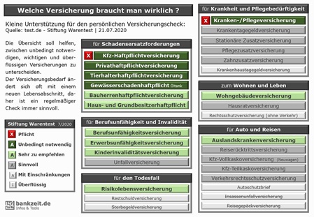 Weiter unten gibt es eine Übersicht mit den Empfehlungen der Stiftung Warentest zu Sachversicherungen, die ich grafisch ein wenig aufgepeppt habe.